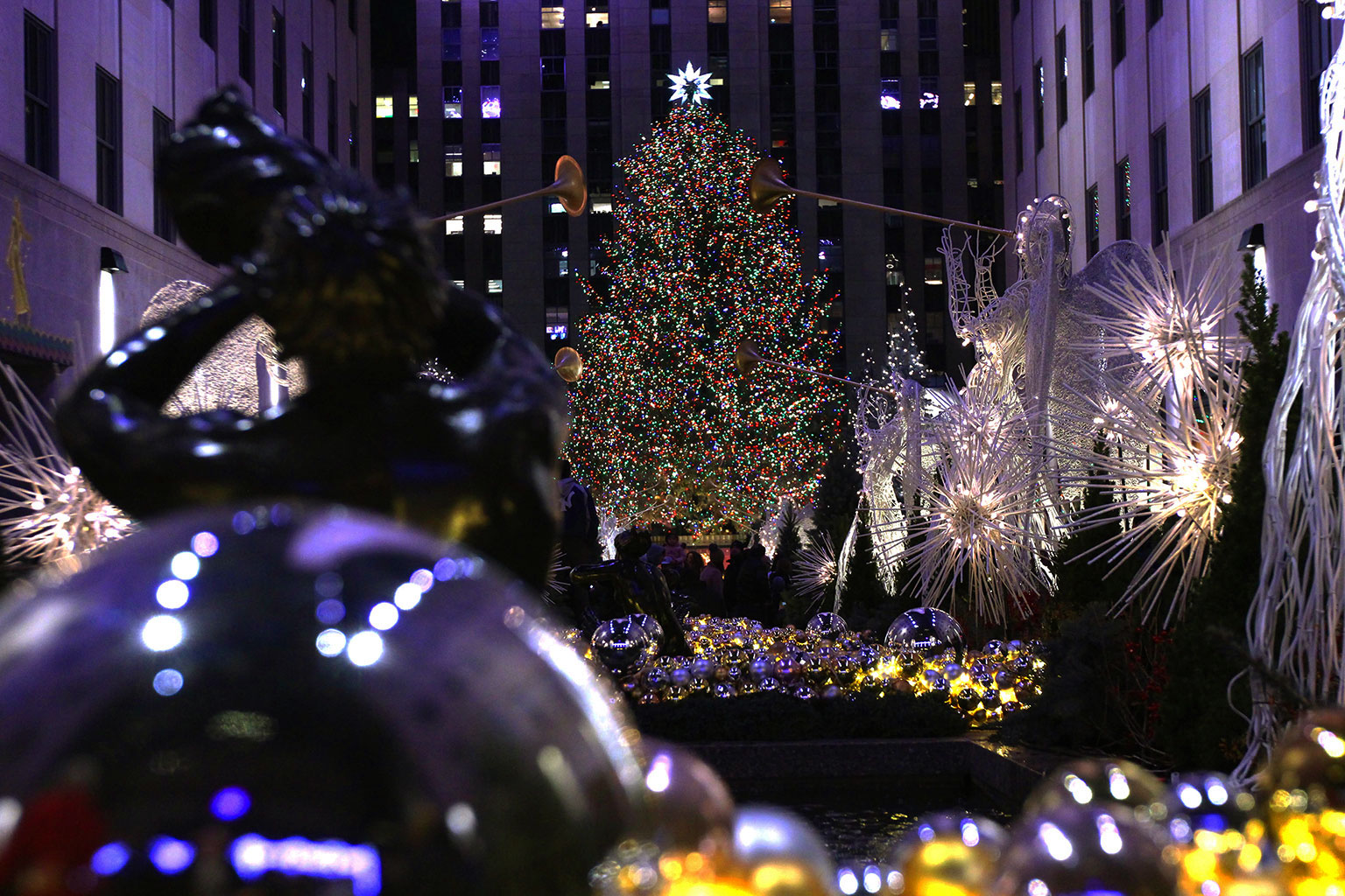 クリスマスのシーズンには巨大なクリスマスツリーが点灯されるので有名。冬はスケートリンクが都会のまんなかにオープン。夏はレストランのパティオに大変身。春から夏まではJAZZライブが行われたり子供たちも楽しめるように子供向けのイベントなども開催。世界各国の国旗が並び、金色のプロメテウスの像をバックに記念撮影!クリスマスの季節には写真撮影のための行列までできる。