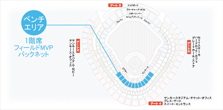 ※利用座席カテゴリー: FIELD MVP(1階席フィールドMVP・ベンチエリア又はバックネット裏 SEC 116-124)となり、席の指定はできません。