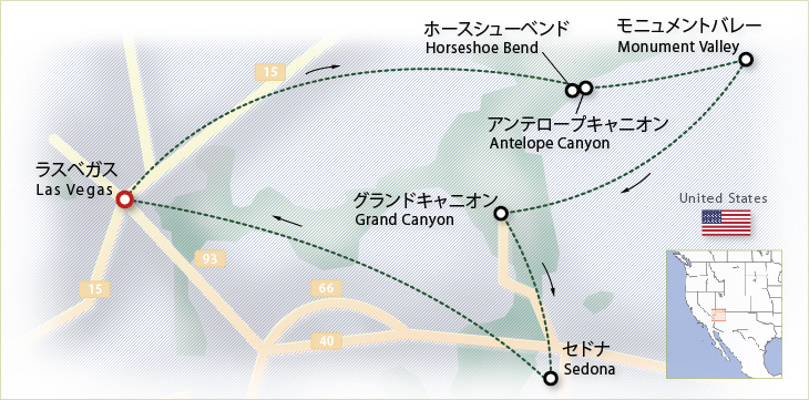 《重要なご案内》米国内務省および国立公園局の発表により、2026年1月1日以降、11箇所の主要国立公園の入園料が改定され、16歳以上の外国人旅行者(米国非居住者)には通常の入園料に加え、国立公園1箇所につきお一人様あたり $100の入園料の支払いが求められます。当ツアーで訪問するグランドキャニオン国立公園が対象となります。つきましては、お一人様につき$100の入園料をツアー当日に現金(USドル) での清算をお願い致します。お客様にはご負担、ご不便おかけいたしますが、米国政府機関による決定事項となりますため、何卒ご理解いただきますようお願い申し上げます。詳細は下記のリンクよりご確認ください。「アメリカ国立公園 入園料改定に関する重要なお知らせ」(2026年1月8日現在)【予約について】・モニュメントバレーのホテルはザ・ビューホテルを手配いたしますが、満室の場合は一旦お知らせさせて頂きます。また、代案としてビュート(残丘)は遠望にはなりますがグールディングスロッジに空きがある場合はご希望をお伺いしお手配いたします。グールディングスロッジの場合でも行程および料金に変更はありませんが、予約の都合上朝食は含まれません。但し、ロッジ内のレストランにてご自身のお支払いで朝食をお召し上がり頂けます。 ・利用ホテルではバスタブがないシャワーのみのお部屋となる場合があります。 ・3名様1室利用の場合、2台のベッドを3名様でご利用頂くようになります。大人3名様でのご参加の場合は2部屋をご利用されることをお勧めします。 ・出発60日前の時点で、お申し込みのお客様がいらっしゃらない場合は、催行中止とさせていただくことがあります。・2名様からの催行となっておりますが、1名様でのお申込みで他にご予約がない場合は2名様分の料金をお支払い頂くことで催行を確定することが可能です。出発日までに他のご予約があった場合は、差額をご返金いたします。 ・他のツアーと混載する場合がございます。また、ツアーガイドが途中で変わる可能性がございます。 ツアー最終日のラスベガス到着は天候、道路状況、その他諸々の理由から大幅に遅れることもございますのでラスベガスにて後泊をお勧めいたします。どうしても同日にフライトをご利用される場合は22:00以降出発予定のフライトを手配されることをお勧めいたします。また、最終日の夜にラスベガスでのショーやディナーの予約を入れることはお勧めいたしません。万が一ショーやディナー、フライトに間に合わなかった場合には責任を負いかねますのでご了承ください。 ・F-1ラスベガスグランプリ開催期間中の11/19-21発と年末イベント中の12/31発はラスベガス大通りが閉鎖しているため、指定集合ホテル以外のホテルから出発になる場合がございます。出発ホテルはツアーの1週間前に確定いたしますのでご了承ください。・ご家族またはグループだけでプライベートツアーをご希望の場合はお問い合わせ下さい。【ツアーについて】 ・天候や現地事情(工事や公園・観光地管理者などからの突然のアクセス規制など)により観光ができない、または観光箇所や順序・実施日が変更になる場合があります。その場合の返金はございませんのでご了承下さい。 ・ツアー使用車両はバンタイプが多いですが、ご参加人数によって変わります。荷物を積載する場所に限りがあるため、お荷物はお1人様あたりスーツケース1つまでとしていただきますようお願い致します。 ・大自然ツアーでは、足場が良好でない斜面をハイキングする場合があります。お客様の健康状態、ハイキングの難易度、天候その他の状況により安全性に疑問があるとガイドが判断する場合は、ハイキングへの参加をご遠慮いただいたり、トレイルの変更、または中止することがありますのでご了承ください。 ・8歳以下のお子様または150cm以下/40Kg以下のお子様はチャイルドシートの利用が義務付けられています。ご持参頂くか、レンタルご希望の方はオプション(有料)をご選択ください。但しレンタル可能なチャイルドシートには数に限りがありますのでご用意できない場合はご持参ください。 ・グランドサークルでは朝夕の温度差が著しいため、防寒、重ね着ができる風除けと防水のしっかりとした服装をお勧めします。また滑りにくい履き慣れた靴を使用し、日避けの帽子、サングラスなどもご持参ください。 【お食事について】 ・大自然をお楽しみ頂くツアーの行程上、お食事がついていないところに関してはご自由に召し上がって頂くかたちをとっております。お好みの簡易食品などをご持参されたり、移動中ファーストフードやスーパーでの買出しをするお時間をとっておりますのでその際にお買い求め頂けます。また、ご希望であればホテルまたはレストランなどをガイドがご案内し、時間内に各自お食事をとって頂くことも可能です。 【全商品共通のご注意】 ・ツアーの集合時間の5分前にはお集まりください。出発時間