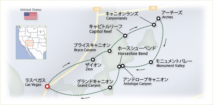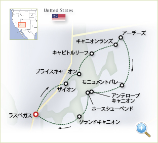 ※4日目グランドキャニオンの夕日観賞は当日の進行状況により日没後公園に到着する可能性があり、夕日をご覧いただけない場合があります。